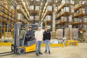Bettina Fabich (Bildmitte) erhielt von Michael Elzinga (links) und Frau Christina (rechts) ein Präsent zum Jubiläum. Foto: Inge Meyer