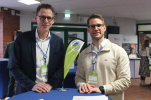 Dazu könnte man locker eine Diplomarbeit schreiben (grinst). Im Fokus steht die Work-Life Balance und das Ziel eine Gesellschaft zu schaffen, die Bock auf Leistung hat, aber mit regelmäßigen Ruhepausen. Nur so kriegen wir es hin, dass unser Wohlstand gerettet wird und an die nächste Generation übergeht. Sich auf den Leistungen der Eltern auszuruhen, ist der falsche Weg. Und dabei müssen Krankheitsbilder früh erkannt werden! Bildunterschrift: Frank Busemann (links) hier im Gespräch mit Tim Schulz von der Barmer Ersatzkasse. Foto: Inge Meyer